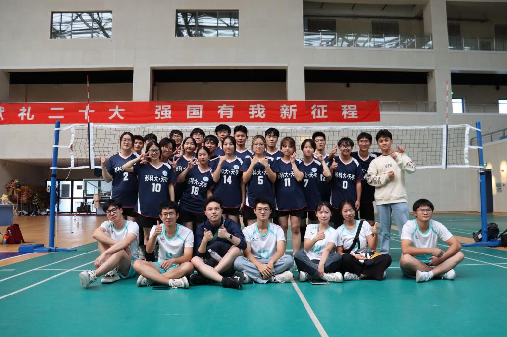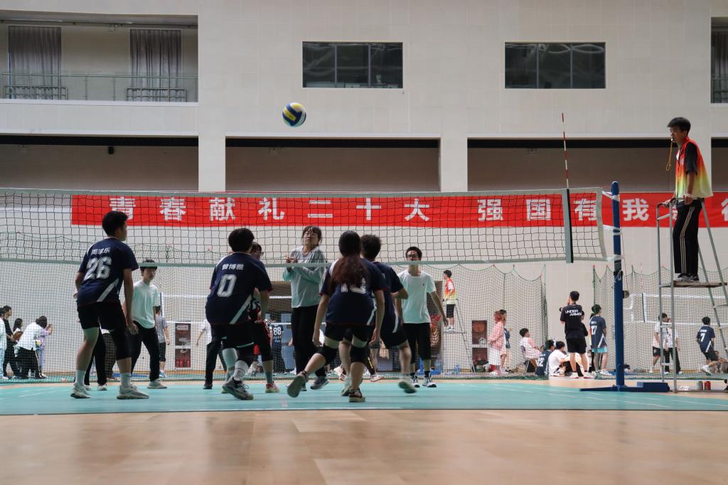 秋风拂面抖精神,龙腾虎跃展雄风。裁判员、各运动方队在欢呼中入场。哨声一响,场内欢呼雀跃、掌声雷鸣。选手们一起一落都不平凡,发球、垫球、传球、扣球、拦网,每一次技巧都熔铸热情。力迎强敌,完美回击,全力以赴,这就是青春!这场体能与技能的比拼点燃了秋日里的热情。经过强强对决后,天平一队获得第四名的好成绩,天平二队获得第三名的好成绩。