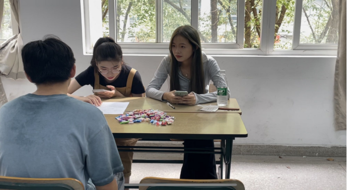 到达招新现场后,同学们先将面试表填写完整,并由相应部门部长带领至各个部门面试点,同学们按照顺序依次进行面试。首先,每位同学进行简短的自我介绍,并对自身能力进行阐述。紧接着,由部长提出与部门有关的问题,面试者进行回答。有的同学信心满满,敢于展现自我,回答问题有条不紊。还有的同学则略显紧张,但也表现出了自己对心仪部门的渴望。面试结束后,各部门部长及时挑选出心仪的人选,也在第一时间将录取结果通过短信发送给各位同学。