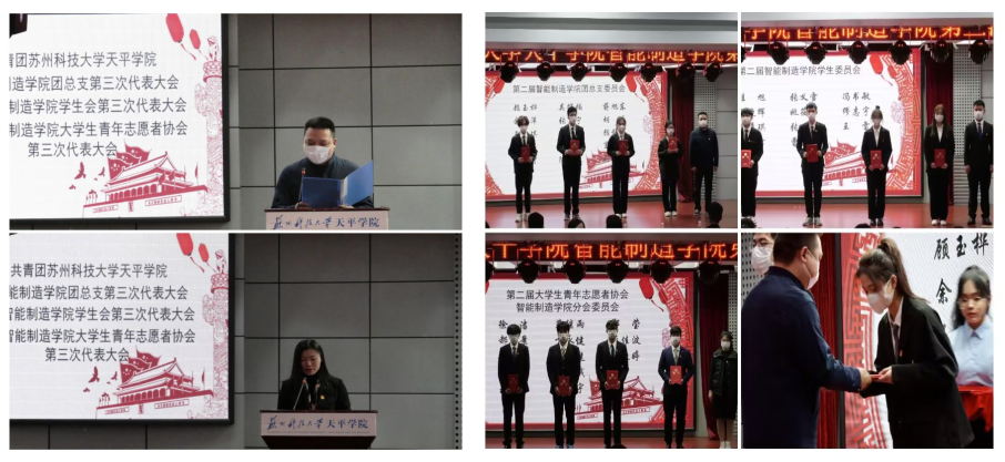在庄严的中华人民共和国国歌中,本次会议缓缓拉开了序幕。大会首先由智能制造学院学工办主任张飞老师致开幕词,致辞中客观地回顾了一年来我院团学工作,总结成绩,指出不足,并提出了今后的工作目标和主要任务。接着由院团委科创实践部部长刘梦平老师宣读贺词,预祝了本次大会的胜利召开,同时为365速发国际在线登录入口接下来的团学工作提出了要求,指明了方向;接着,由学工办主任张飞老师、团总支书记孙恒老师、辅导员张晶杰老师为智能制造学院团总支、学生会、大学生青年志愿者协会第二届优秀委员颁发聘书并合影留念。