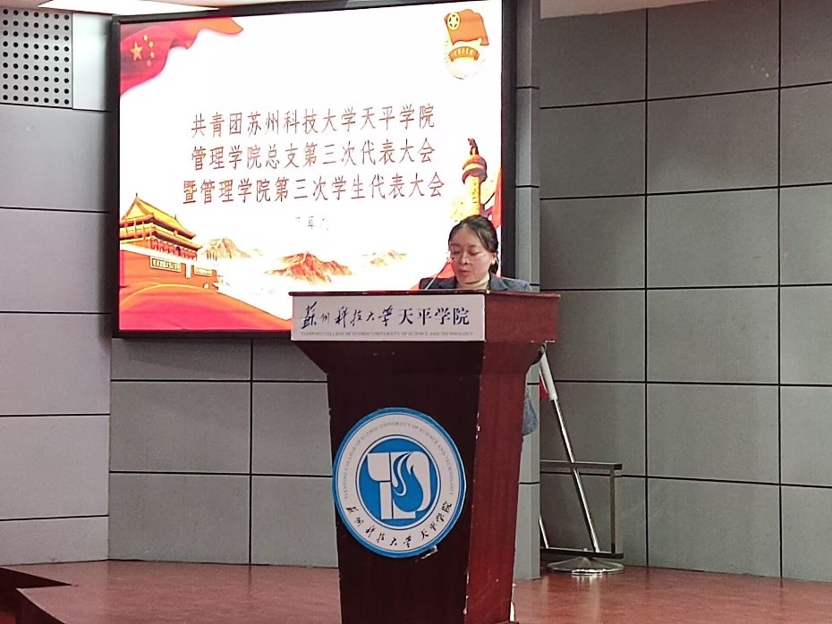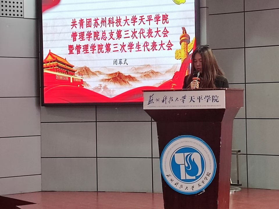 最后,管理学院团总支书记吴梦迪老师上台致大会闭幕词,带领大家总结过去工作经验,展望未来的宏伟蓝图,表达对新一任团学委员的祝贺,对管理学院团总支的期望,激励大家共同奋斗。