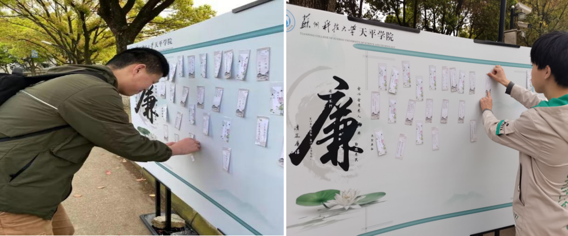 工作人员线下进行摆摊,同学们在相应时间内到达指定地点领取书签并书写有关廉洁主题内容,书写完将书签粘贴在活动立板上。在活动现场,同学们都积极参加,挑选自己喜欢的书签并写上与廉洁有关的宣传语,写完后,同学们将自己写的书签粘在活动立板上。在现场,同学们写的书签展示吸引了更多的同学观赏,进一步宣传了廉洁文化,吸引了更多的同学参与此次活动,活动现场十分热闹。同学们还可以领取到信纸,参与廉洁主题征文活动,展现自己的文采,宣扬廉洁主题文化。