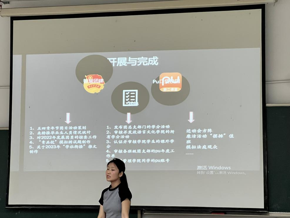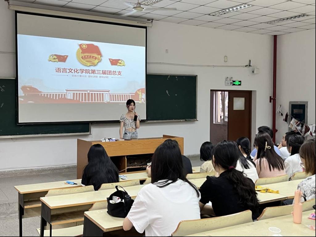 为汇报工作成果,促进团队内部交流合作,推动团总支高质量发展,2023年6月1日晚,语言文化学院团总支于J1召开第三届全体干事大会。