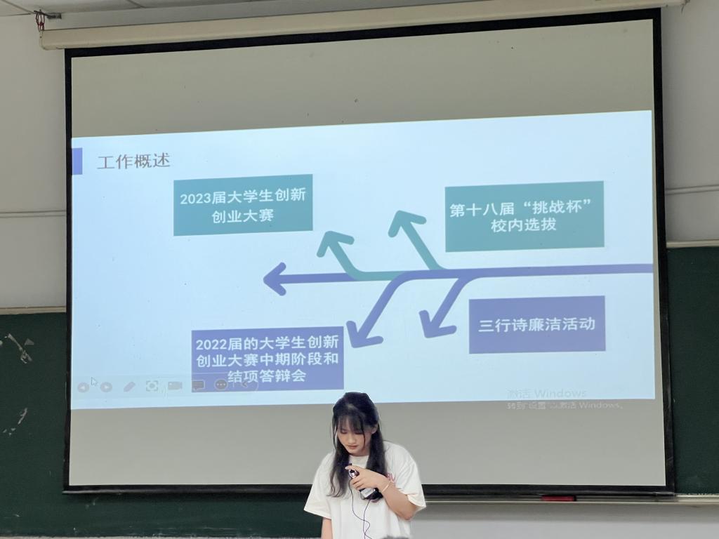 创新部过去一年的工作安排集中在2022届、2023届创新创业大赛及第十八届“挑战杯”校内选拔赛中,针对性强,工作效能高,祝愿各位再接再厉,再创佳绩。