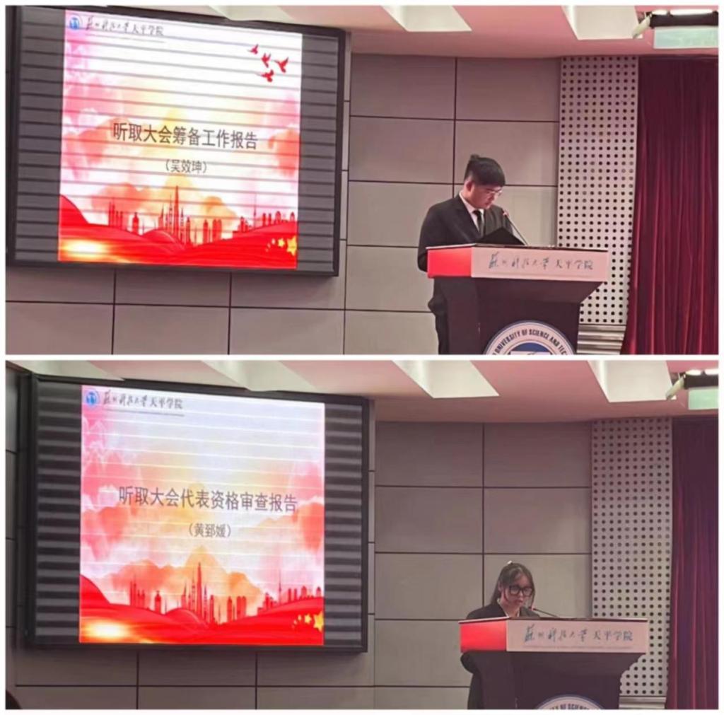 大会第一项议程,由吴效坤同学作大会筹备工作报告,审议通过筹备委员名单、代表资格审查委员会名单、大会选举工作人员建议名单,由黄郅媛同学代表向本次大会作代表资格审查报告并提交大会审议通过。