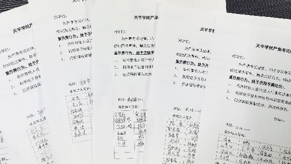 各班辅导员们首先给学生们解读了诚信教育的必要性:诚信是理想信念教育的基础,对于大学生全面发展具有重要作用,更是大学生进入社会的必要素质之一。其次通过解读《学生手册》关于考试考场纪律的相关规定及违纪作弊的严重后果,并以学院以往考试违纪学生为例,加强同学们对诚信考试重要性的认识。最后,各辅导员通过让学生签字《天平学院严肃考试纪律告知书》,帮助同学们端正考试态度,诚信考试。
