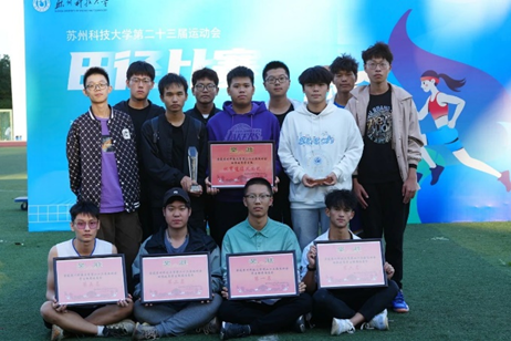 电气2321管俊杰、电气2322黎洪涛、电子2122韦政洋获男子4*100接力赛第二名。